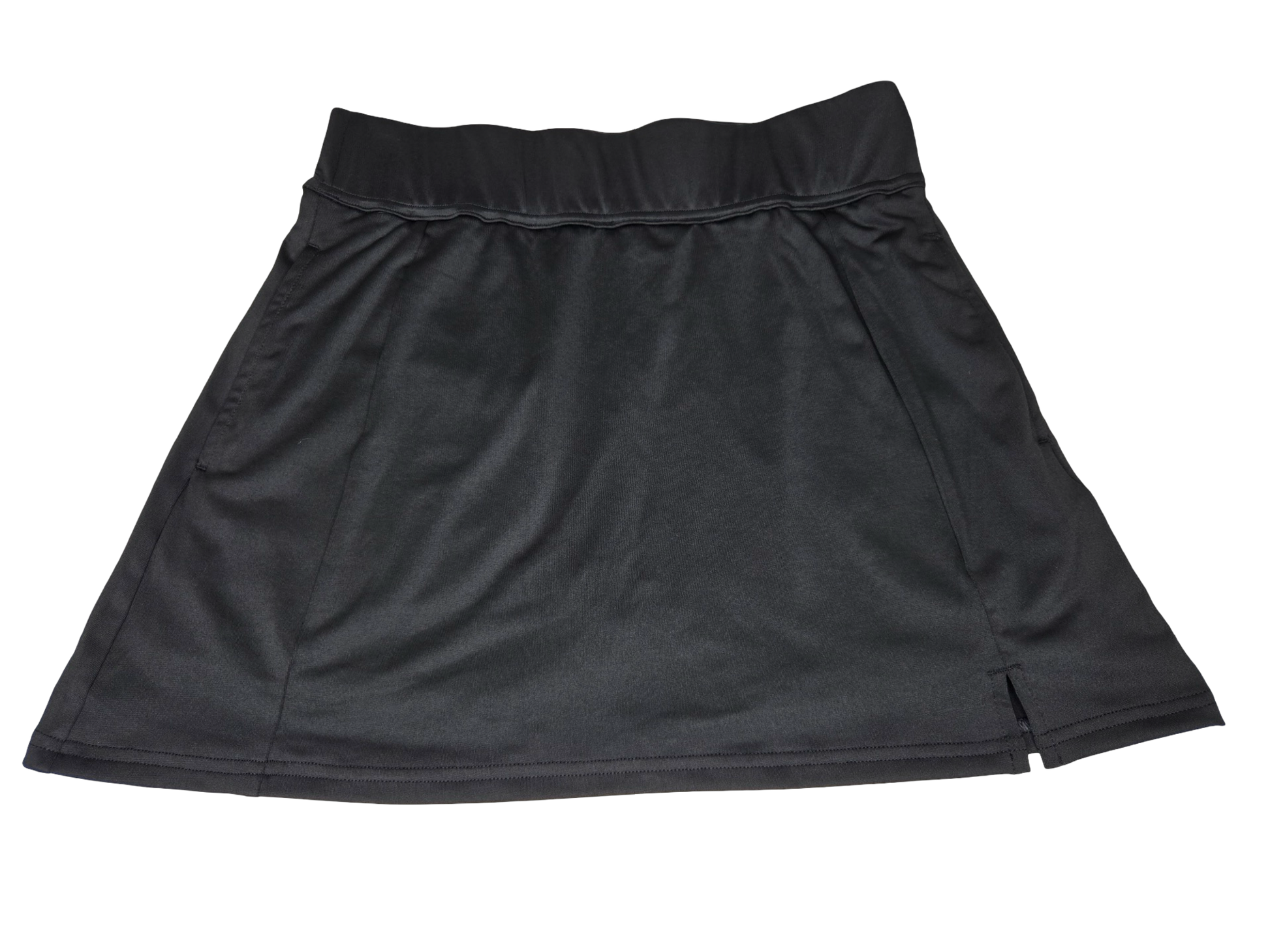 Performance-ready black women's golf skort built from a premium 85/15 polyester-spandex blend for comfort and durability on the course. Five strategically placed pockets—including two hidden interior pockets for phone or tennis balls, two zippered options, and a rear pocket—keep essentials secure while you focus on your game.